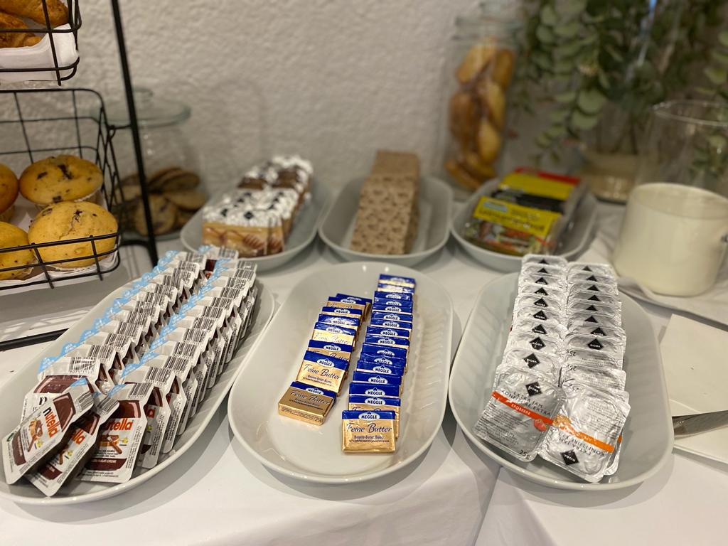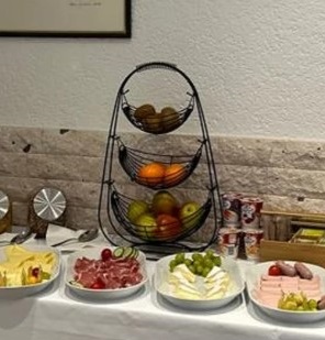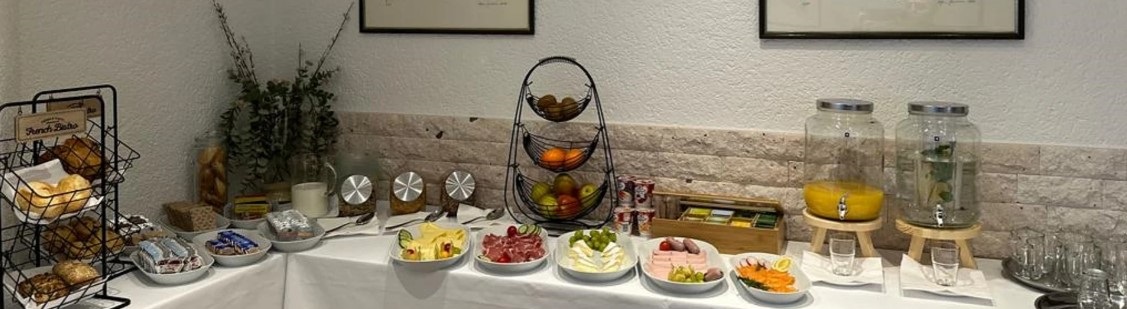 Morgens erwartet Sie in unserem Frühstücksraum eine große Auswahl am Frühstücksbuffet. Mit reichhaltigem Brötchen- und Brotsortiment, Säften, Mineralwasser, eine großen Auswahl an Marmeladen, verschiedene Müslis, Jogurt, Trockenfrüchten, Obst sowie Wurst und Käse kann der Tag beginnen.